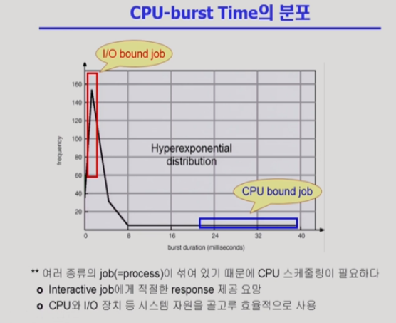 어떤 프로그램이든 프로그램이 실행되는 것은 CPU burst와 I/O burst를 반복하며 실행된다,